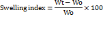 The swelling index of the different batches of liposomes was calculated using the following formula: