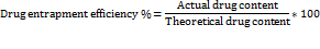 The percentage of drug entrapment efficiency was calculated using the following formula: