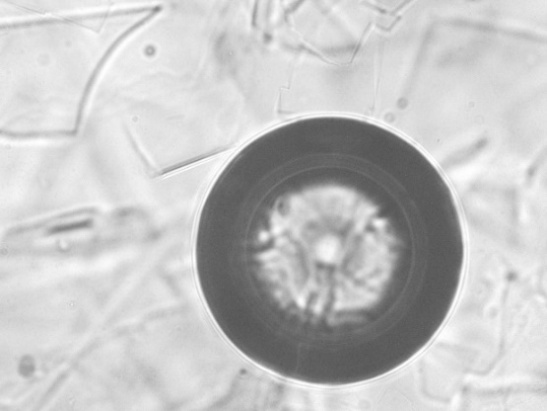 Optimized batch B3 under a dark field microscope had been viewed in inversed phase to view the interior of the liposomes in 40X and 10X, respectively. Instrument used Magnus INVS (220-240V-0.3A, 50-60Hz). The liposomes were regular and spherical.