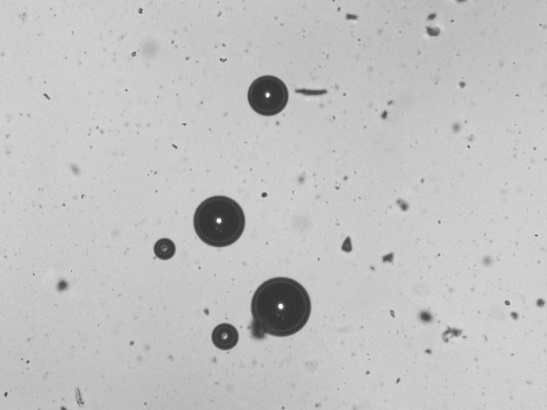 Fig. 8: Image of liposome under darkfield microscope 40X and 10X, respectively