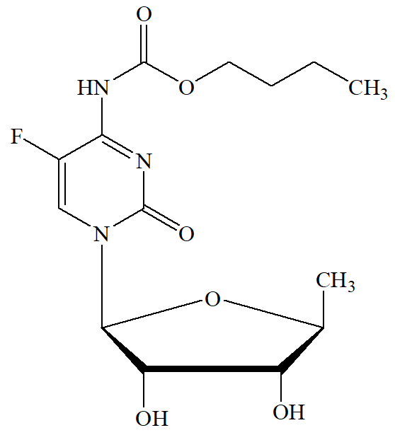 The correlation between cancer, life, and drugs is vital and frightening. Cancer causes life-threatening situations, and certain magical medications can save lives; conversely, some medicines or drug consumption can cause cancer and death. Capecitabine (N4-pentyloxycarbonyl-5'-deoxy-5-fluoro-cytidine), an oral fluoropyrimidine, has been synthesized in the laboratory as an inactive precursor that passes intact through the intestinal mucosa and is sequentially converted to 5'-deoxy-5-fluorocytidine (5'-DFCR), 5'-deoxy-5-fluorouridine (5'-DFUR) and finally 5-FU in the liver and tumour tissues selectively [1]. Based on data demonstrating consistent activity across several trials in patients with heavily pre-treated breast cancer, capecitabine was approved in the U. S. in 1998 for treating patients with metastatic disease resistant to paclitaxel and anthracycline-containing therapy, with later European Union approval for single-agent capecitabine in the metastatic setting. In 2001, the U. S. Food and Drug Administration approved capecitabine plus docetaxel (XT) for treating metastatic breast cancer based on a substantial phase III trial comparing XT with docetaxel alone, which demonstrated a survival benefit for combination therapy compared to single-agent therapy [2]. Capecitabine has provided compelling efficacy data for treating metastatic breast cancer and stage III or IV colorectal cancer, both as monotherapy and in combination regimens [3]. Capecitabine (fig. 1) is converted to 5-fluorouracil (5-FU) in a three-step enzymatic process, the final stage of which is mediated by thymidine phosphorylase (TP). Significantly higher TP activity (p<.05) has been recorded in several human tumor tissues (including the colorectum, breast, stomach, cervix, uterus, ovary, kidney, bladder, and thyroid) compared with normal tissue adjacent to the tumor [4]. In animal models, capecitabine is metabolically activated preferentially at the tumour site and shows antineoplastic activity [5]. In first-line metastatic colorectal cancer (MCRC), capecitabine results in superior response rates and equivalent progression-free and overall survival compared with i. v., 5-FU/lV [6]. In adults, capecitabine has a bioavailability of approximately 100% with a Cmax of 3.9 mg/l, Tmax of 1.5 to 2 h, and AUC of 5.96 mg. h/l. The predominant route of elimination is renal, and a dosage reduction of 75% is recommended in patients with creatinine clearance (CrCl) of 30 to 50 ml/min. The drug is contraindicated if CrCl is<30 ml/min [7]. The most common treatment-related adverse events are palmar-plantar erythrodysesthesia, diarrhoea, and stomatitis [8]. Capecitabine is an effective and well-tolerated drug in elderly patients with metastatic breast cancer (MBC), including for first-line treatment [9]. Data from two large phase III trials performed in patients receiving first-line chemotherapy for metastatic colorectal cancer showed that capecitabine yielded higher objective response rates and equivalent median time to tumor progression and overall survival rates as 5-FU/leucovorin [10]. In a pooled analysis, intermittent capecitabine therapy delivered first-line therapeutic outcomes that were noticeably superior to fluorouracil with leucovorin therapy for patients with advanced or metastatic colorectal cancer [11].