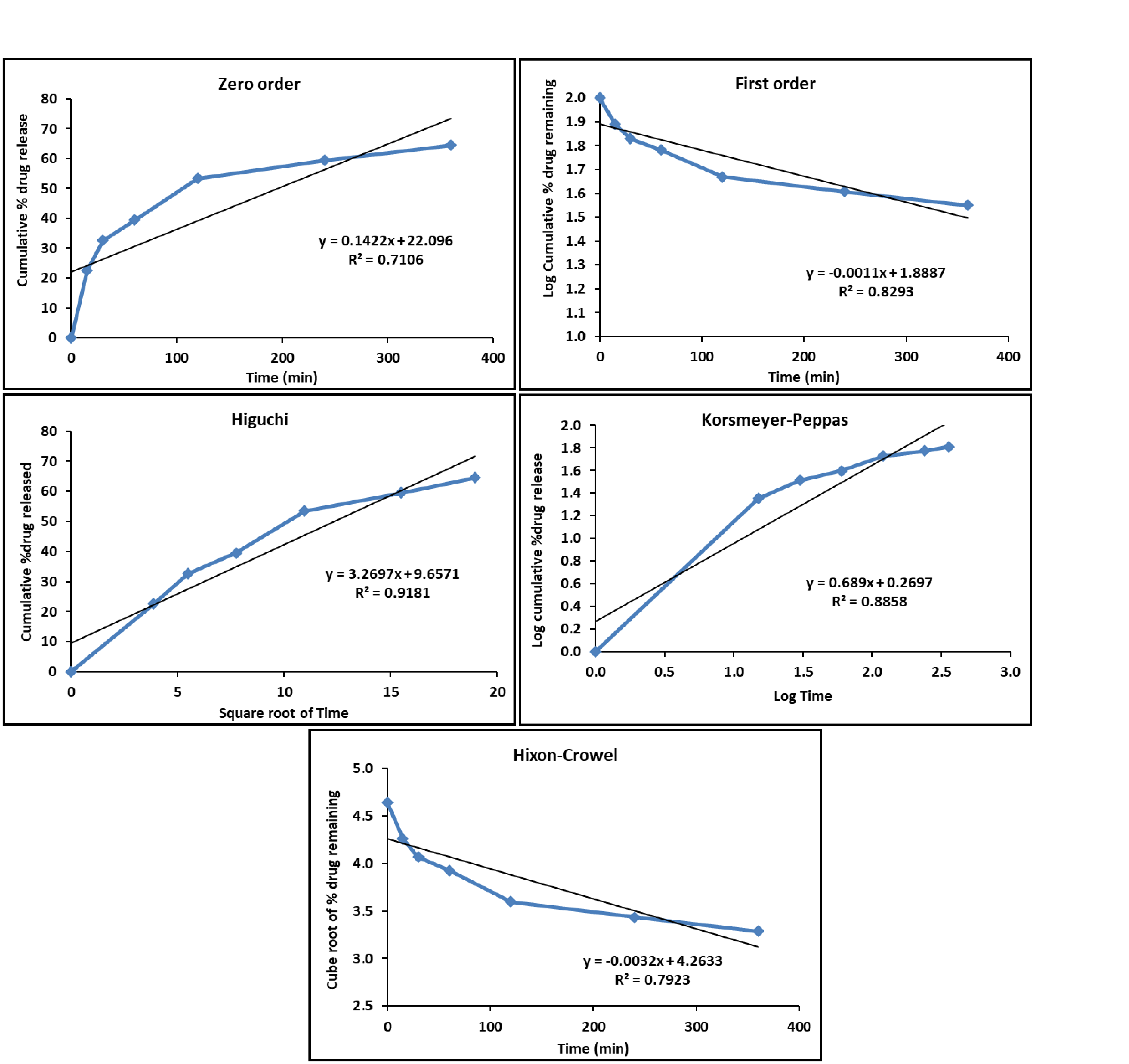 | 1. | Zero-order | Qo-Qt= k0t | 0.1422 | 0.7106 |