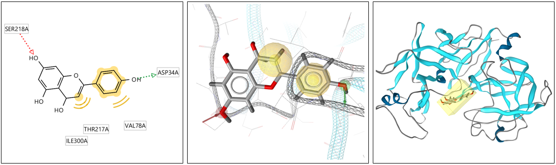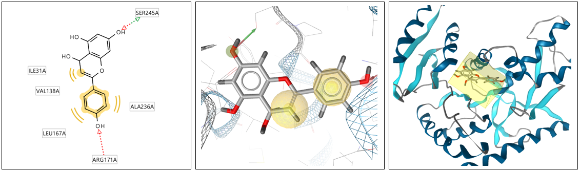 However, the report does not mention specific target receptors or cellular mechanisms where API acts. As a result, the authors undertook a molecular docking experiment to test API antimalarial efficacy on various types and classes of receptors. We also researched the pharmacophores model to learn more about the molecular processes by which the functional group interacts with the receptor's amino acids.