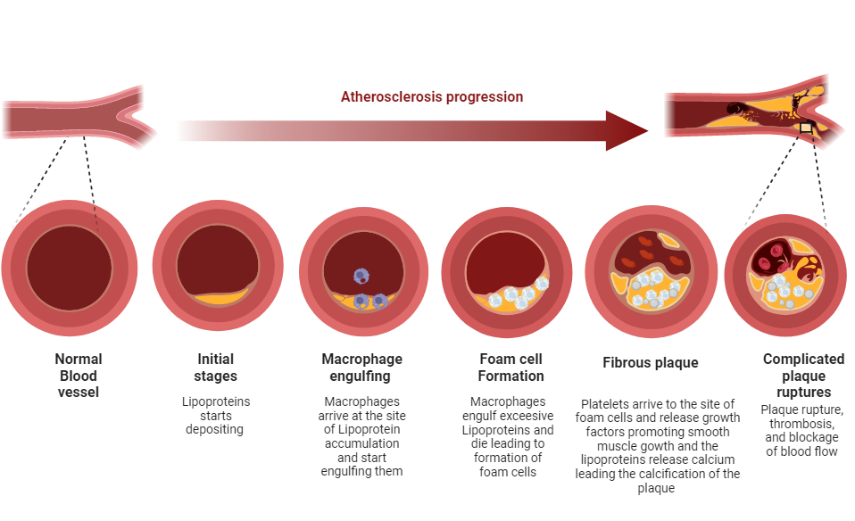 Fig. 1: Different stages of atherosclerosis progression [4-6]