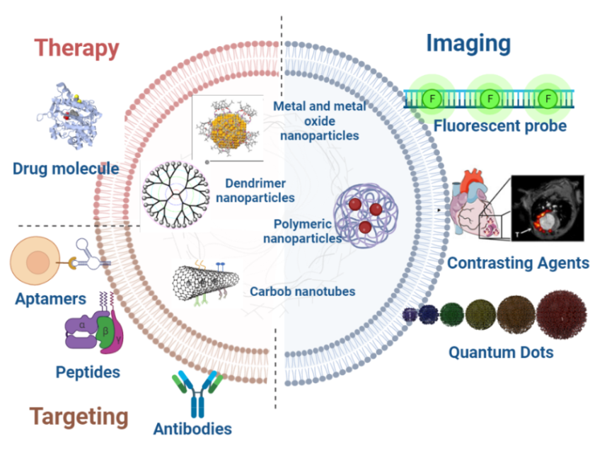 Routinely administering cardioprotective medicines has certain drawbacks, including limited solubility, poor bioavailability, non-specific action, less precise targeting, and a shorter half-life [30]. We can achieve selective targeting, tracking, or monitoring the drug delivery, a higher drug load, increased penetration, controlled release, enhanced biocompatibility, tuneability, and surface functionalization by designing a nanocarrier to carry both the diagnostic and the therapeutic molecule. As a result, Nanotheranostic allows us to provide the therapeutic molecule for a specific condition while also diagnosing it [32-34].