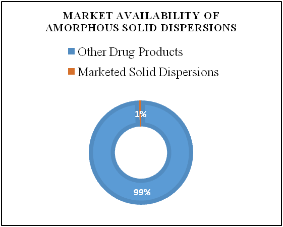 Fig. 1: Screw extruder and market availability of amorphous solid dispersions. Among the 3732 registered drugs in 2015, only 24 were amorphous solid dispersion formulations which shows that the formulations are not readily marketed