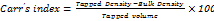 The Carrs compressibility index was used to calculate the compressibility index of the powder mixture. It was an easy test to determine a powder's BD, TD, and agglomeration rate. The following equation is used to calculate the Carrs Index [22].