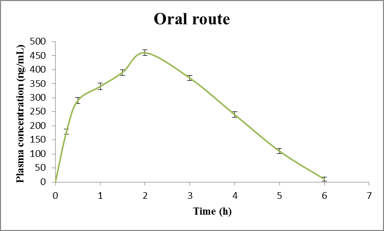 Pharmacokinetic parameters like AUC, Cmax, and Tmax can be read directly from the plots (fig. 6, 7) and are calculated by non-compartmental analysis using PK solver, an add-in program for pharmacokinetic analysis in Microsoft Excel 2010.