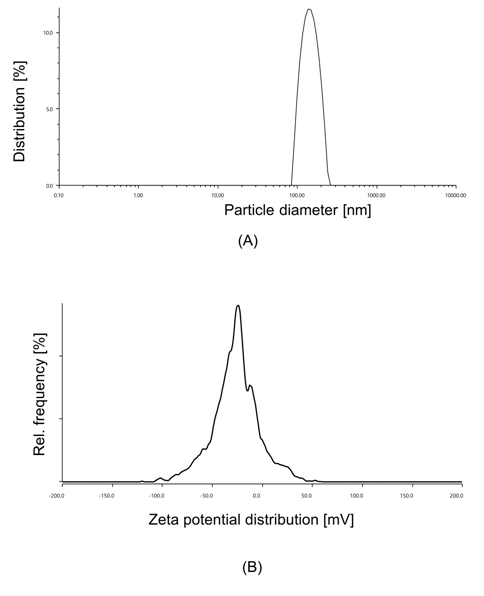 Fig. 4: (A) Particle size distribution and (B) zeta potential curves of optimized formulation batch