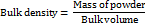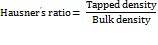 Hausner’s ratio is a measure that can be employed to forecast the tendency of a given powder sample to be compressed and which is understood to reveal the significance of inter-particle interactions. Greater inter-particle interactions characterize poorer flowing materials, so a greater difference between bulk and tapped densities is observed [17].