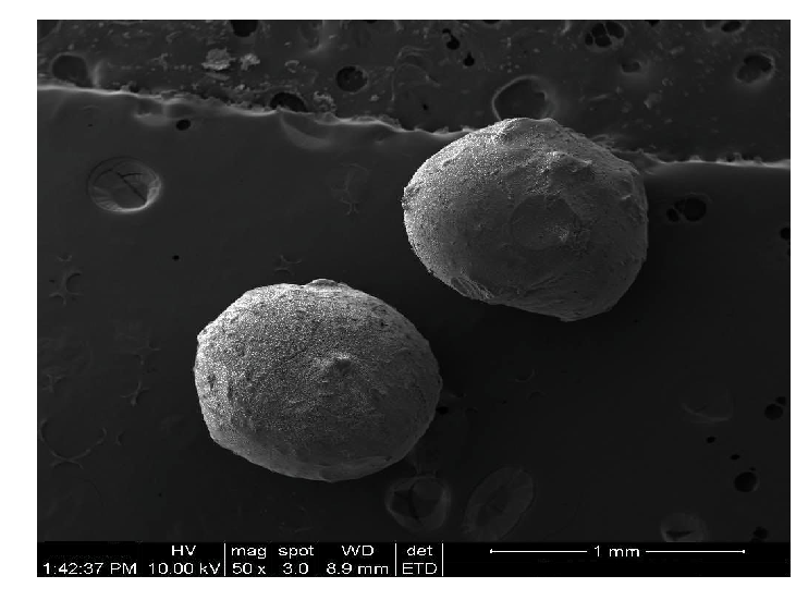 Scanning electron microscopy (SEM) analysis was used to determine the surface morphology (Hitachi S-3700 N). The microparticles were fixed in slabs and coated with gold/palladium using a sputter coater.