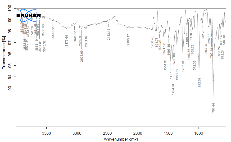 The FT-IR analysis for pure drugs, excipients and formulations were recorded on BRUCKER FT-Infrared Spectrophotometer using KBr pellet technique [17]. Spectrum was integrated in transmittance mode at the wave number range 380 to 4368 cm-1.