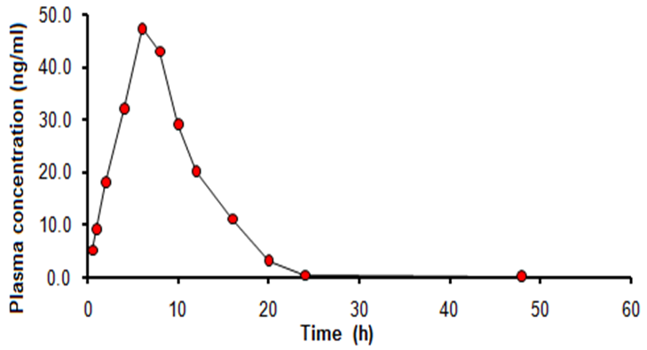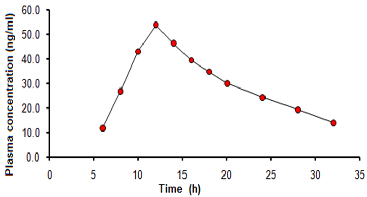 Fig. 8: Time Vs plasma drug concentration of Ivabradine HCl following oral administration of an optimized formulation