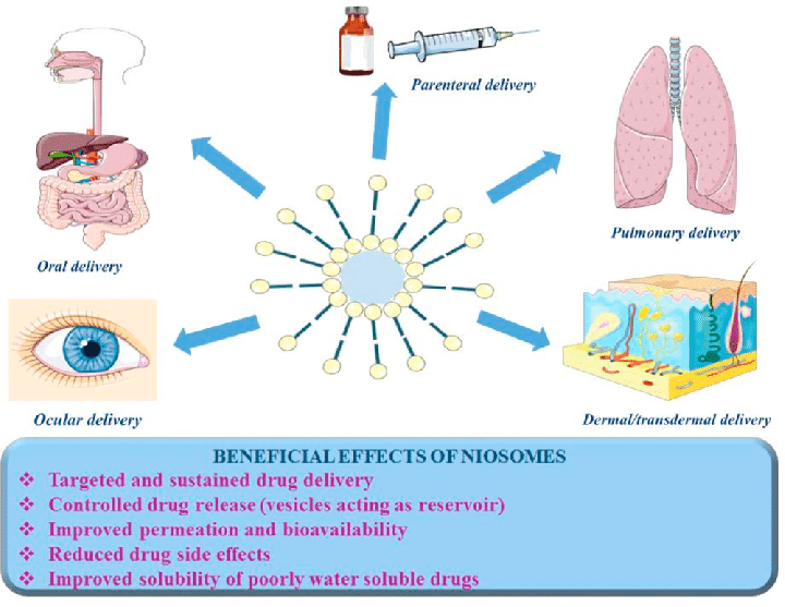 Small molecules like proteins and vaccines are now recognized as a serious class of therapeutic agents thanks to recent developments in the research project. One of the many examples of significant progress in drug delivery technology is the niosomal drug delivery system. They can be created using a variety of methods, which alter the process and, consequently the medication's features, including the amount of cholesterol and the types, structures, and surfactant concentrations. The drug's metabolism, tissue distribution, plasma clearance kinetics, and cellular contact are all changed by non-ionic surfactant vesicles. Researchers and academicians generally agree with the idea of putting the drug into or niosomes for a much better targeting of the drug to the appropriate tissue destination.