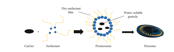 In this system, niosomes were prepared from the drug, nonionic surfactant, and cholesterol; then, it is combined in carbopol-934 gel (%1 w/w) base comprising propylene glycol (%10 w/w) and glycerol (%30 w/w) [26].