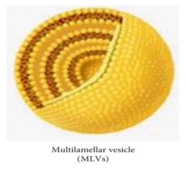As shown in fig. 3, MLVs are formed from some bilayers adjacent to the aqueous lipid section individually. The estimated dimensions of these vesicles stay between 100 and 1000 nm in diameter. Multilamellar vesicles, because of simple preparation, are reflexively stable upon keeping for extend phases, and appropriate for lipophilic agents, are widely used [15].