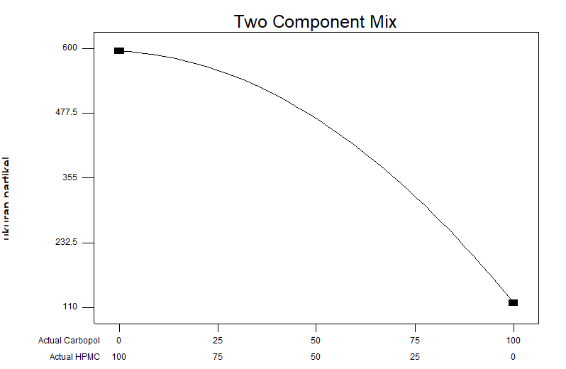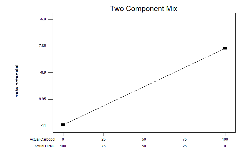 In this study, both carbopol and HPMC coefficients are negative (-7.94 and-10.96), which means that these components contribute to a decrease in the zeta potential. The interaction of carbopol with HPMC does not affect increased or decreased zeta potential. These equations show that HPMC has the most dominant effect in reducing the zeta potential, and the interaction of the two gelling agents will not increase or decrease the zeta potential.