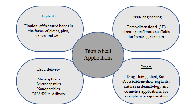Fig. 3: Biomedical applications of PLA synthesis of P4HB (Source: author)