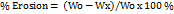Sequentially, the immersed film was dried in an oven for 24 h and then kept in a desiccator overnight. The remaining weight of the film was recorded to determine the percent of erosion by the following equation: