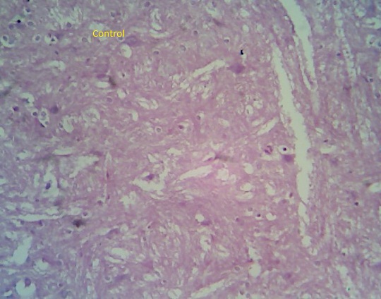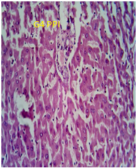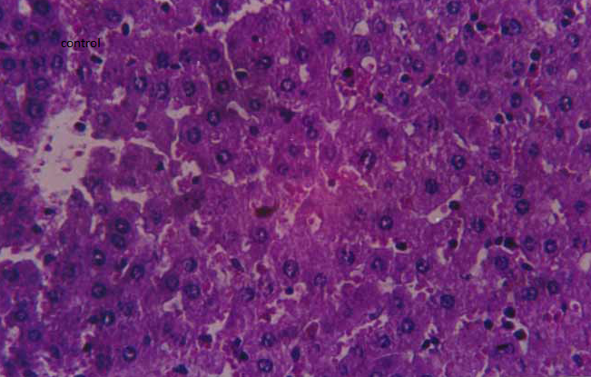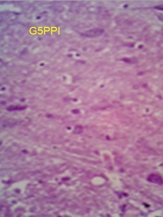 Fig. 9: Photomicrograph of sections of brain and liver of animals of control group and animals administered with a single dose of 250 mg/kg to PEGylated G4 and G5 PPI dendrimers after 24 h. (magnification: 400X)
