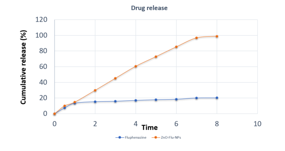 Fig. 5: % Drug release of fluphenazine and FLU-ZnO-NPs