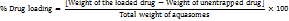 Entrapment Efficiency and Drug Loading: Entrapment efficiency is the percentage of actual amount of drug entrapped in the carrier relative to the initial amount of loaded drug. The % entrapment efficiency is calculated by: