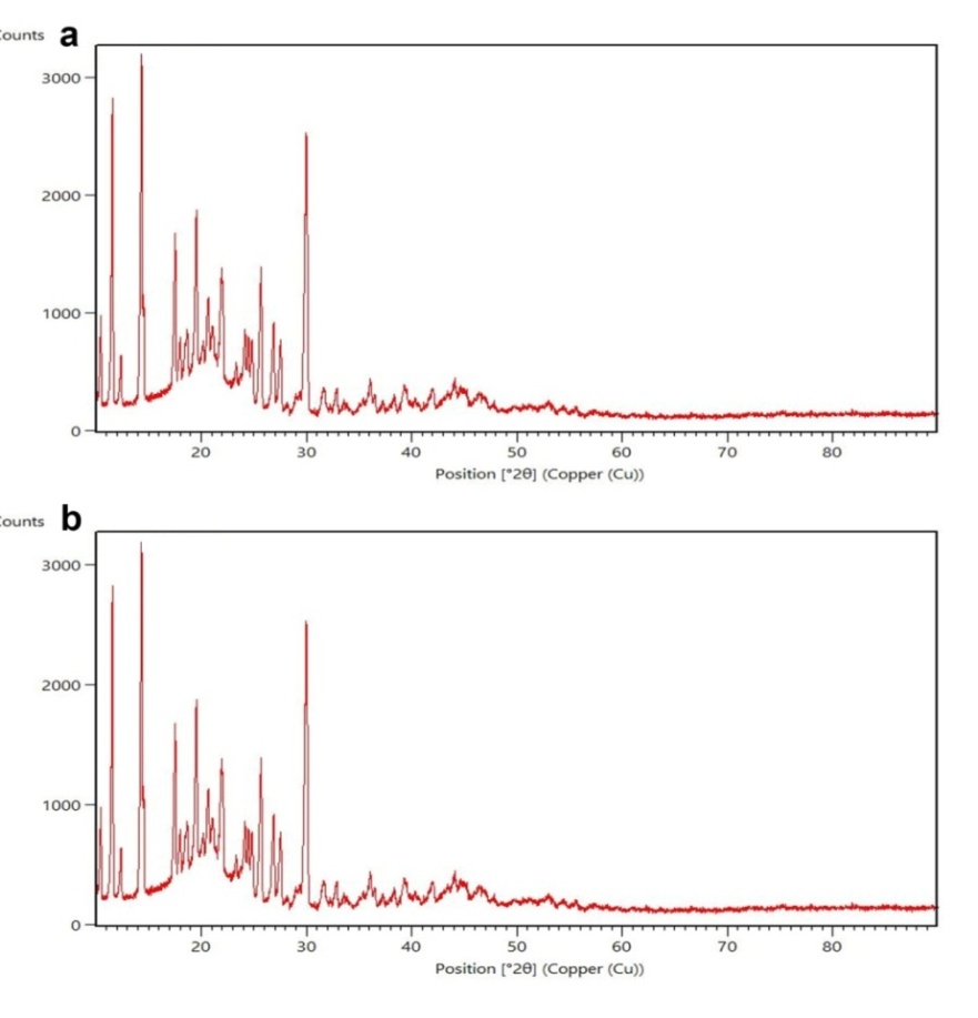 Fig. 3: XRD patterns of a. Unsintered riboflavin powder mixture b. Sintered riboflavin powder mixture