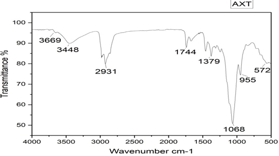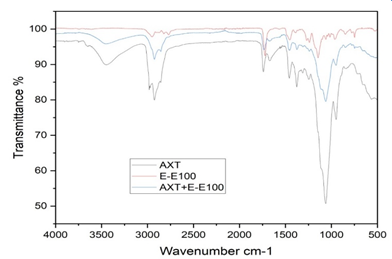To assess the compatibility of drugs and polymers, the FTIR of Astaxanthin and polymer mixtures were evaluated. Data covering the spectral range of 450-4000 cm-1 was obtained upon sample treatment with KBr [18].