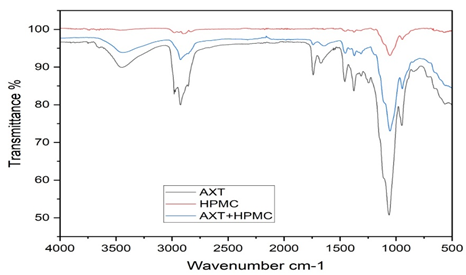 Fig. 6: FTIR spectra of Astaxanthin and HPMC