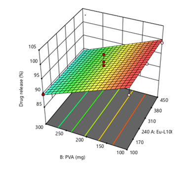 | 3 | Drug release | 94.94-0.0003(A)-0.05408(B), R2value: 0.8348, P-value: <0.0001, F-value-25.26 |