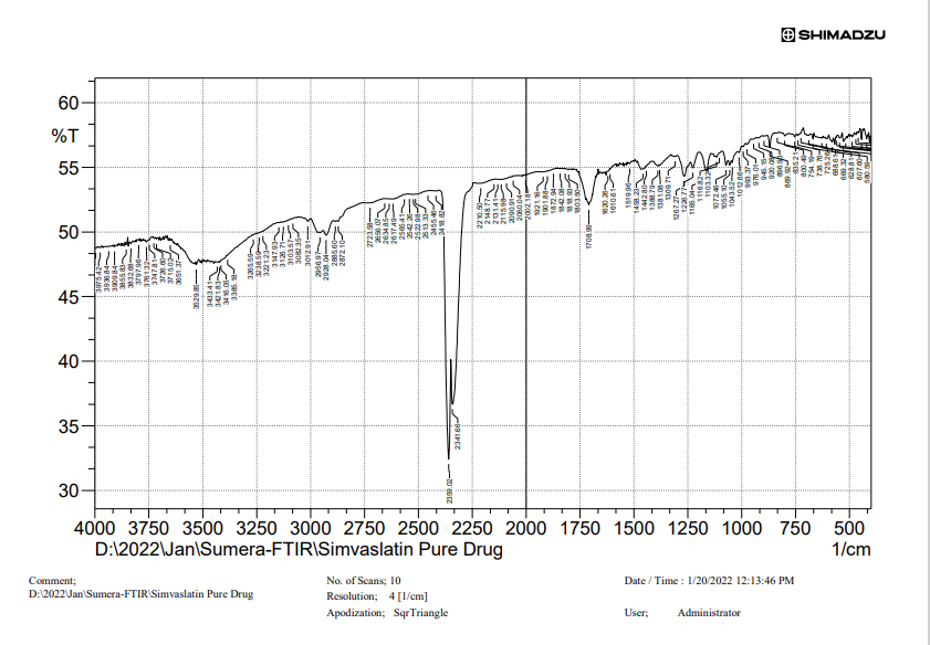 The API and SIM nanosponge samples were subjected to FTIR spectrum measurement (in the region of 400-4000 cm-1) using the KBr pellet method [24].