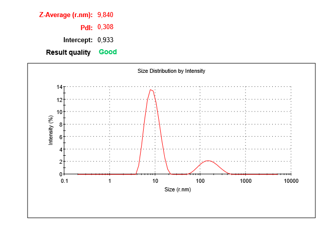 Droplet size is an important microemulsion parameter since it affects microemulsion stability and skin penetration [18-20]. The droplet size distribution of microemulsion was measured with PCS using zetasizer at a temperature of 25 °C. The samples were prepared from 1:100 dilution of the microemulsion in demineralized water. The evaluation of droplet size analysis data was insured using intensity distribution.