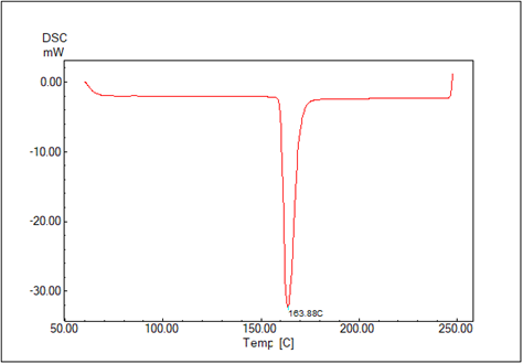DSC was conducted by placing 5 mg of cilostazol in the aluminum pan of the DSC-60 Shimadzu. An analysis of this technique was made by using nitrogen at a rate of 10 °C/min as inflow gas with a heating range of 50–250 °C [6]. DSC thermogram of cilostazol was recorded.