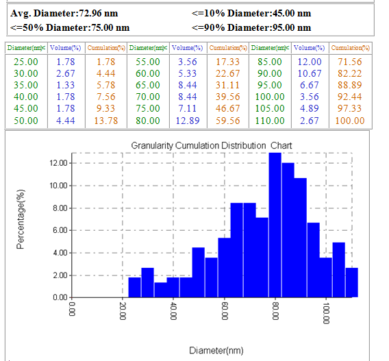 PDI is used to investigate the uniformity of droplet distribution within the prepared nanoemulsions. The higher the value of the PDI, the lower the uniformity of droplet distribution within the formulation. In the herein study, the measurement was made utilizing the particle size analyzer ABT-9000 (Angstrom Advanced lnc. USA) [9].