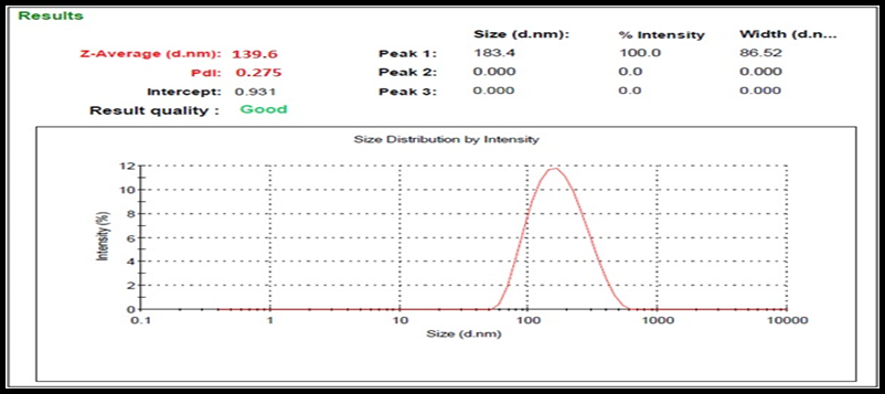 Particle suspensions and emulsions are stabilized by the columbic repulsive forces that keep the particles from aggregating in the colloidal state and maintaining the stability of the system. The zeta potential of-23.6 mV in the aforementioned optimized Tacrolimus transfersome formulation indicated the stability of the created transfersomal vesicles, which may be brought on by the presence of negatively charged phosphate and carbonyl groups in soy lecithin [35].