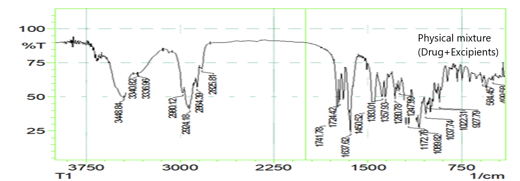 In order to get conformational data, attenuated total reflectance infrared spectroscopy (ATR-FTIR) was used. This technique is used to look at the interactions between drugs and other excipients.