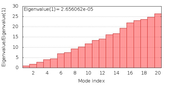 Fig. 15: Eigen values, the eigenvalue associated with each normal mode represents the motion stiffness. Its value is directly related to the energy required to deform the structure. The lower the eigenvalue, the easier the deformation