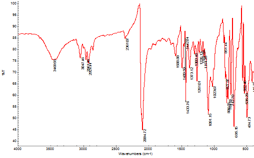 Fig. 2: FTIR spectrum of [Ru(N-P)2(NCS)2]