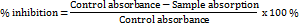 Antioxidant activity was determined based on free radical inhibition of the ethanol extract of S. oleosa leaves using the 2,2-diphenyl-1-picrylhydrazyl (DPPH) method [22]. Extract samples were prepared by a series of dilutions in ethanol (5, 10, 15, 20, and 25 ppm). Then 1.5 ml of a 160 ppm DPPH solution was added to each extracted sample up to 1.5 ml. The mixture was shaken vigorously and incubated at room temperature for 30 min. The absorbance of the mixture was then measured at 516 nm using a UV-VIS spectrophotometer in triplicate. The control group only contained 2 ml of 160 ppm DPPH and 2 ml of ethanol PA without extract. Ascorbic acid was used as the reference standard compound. Radical scavenging activity or percent inhibition is calculated as follows: