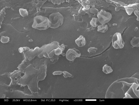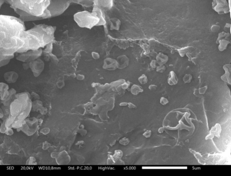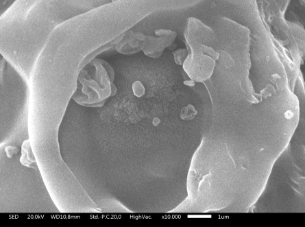 Fig. 2: Results of SEM analysis of S. oleosa microcapsules coated with polyvinyl alcohol