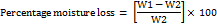Percentage moisture loss