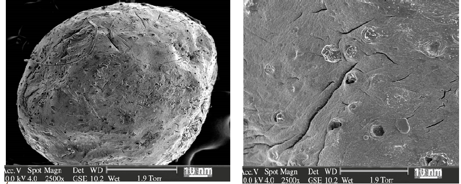 The SEM was carried out to determine the shape and surface morphology of batch (NS3). The photographs of polymeric nanospheres are shown in fig. 1.