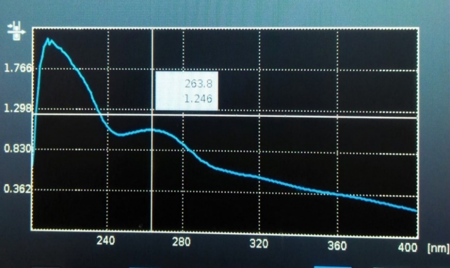 The U. V absorption spectra of Glycyrrhiza glabra of the extract is shown in fig. 1 and highest peak is observed at 263 nm, which was taken as maximum wavelength of absorption (λmax) and all the analysis were carried out at this wavelength.