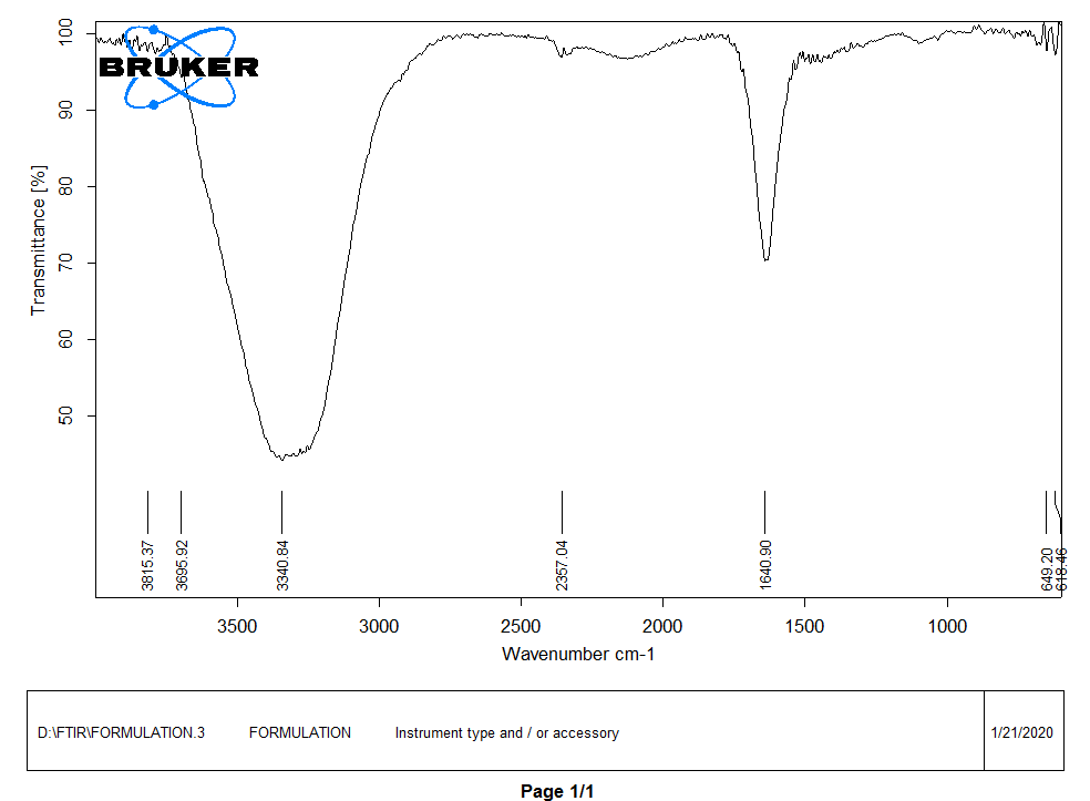 The development of dosage form involves the drug being blended with different excipients to enhance the manufacturability and improve the ability to deliver the drug effectively. The interaction between extract and excipients can significantly alter the formulation's chemical nature, stability, therapeutic efficacy, safety and bioavailability. Thus, a thorough analysis of the possible incompatibilities between the drug and excipients is an important parameter of the pre-formulation study. Commonly used to determine the physical and chemical interaction include spectroscopic methods, thermal analysis, chromatographic methods and dissolution test etc. In this study, the possibility of interaction between the drug and excipient was detected by Fourier transform infrared spectroscopy (FTIR) sampling tool [25].