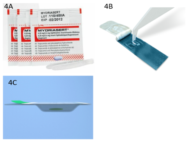 Korobelnik JF, Tavera C, Renaud Rougier MB, El Meski S, Colin J. The Mydriasert insert: an alternative to eye drops for preangiographic mydriasis. J Fr Ophtalmol. 2004 Oct;27(8):897-902. doi: 10.1016/s0181-5512(04)96233-x, PMID 15547470.