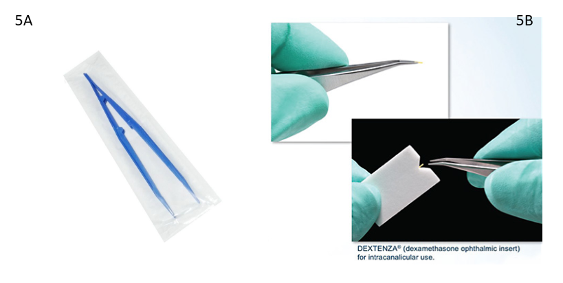 Fig. 5: Additional components of the Dextenza® packaging: 5A–applicator for the introduction of OI (tweezers) [48]; 5B–Foam insert-holder of Dextenza® [20]