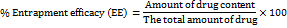 Percentage entrapment efficacy is defined as the amount of drug entrapped within the matrix core formed by the organic phase components. First, the nanoemulsions were centrifuged at 12000 rpm for 20 min, and the supernatant was collected and filtered through a 0.22 µm membrane filter. Then, the drug was quantified using HPLC, and the entrapment efficiency was mentioned as the percentage by using the below-mentioned formula [23].