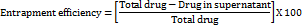 About 5 ml of the sample was centrifuged at 15,000 rpm for 15 min, and the resulting supernatant layer was diluted with methanol and analyzed using UV–Visible spectrophotometer at 275 nm. This process will be repeated thrice to ensure that the free drug will be completely removed. The percentage of drug entrapment in Aceclofenac Microsponges was calculated using the formula mentioned below [17].