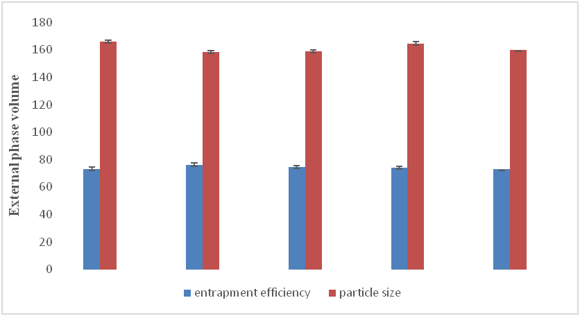 Fig. 2: Effect of external phase volume on the production of microsponges values represent mean±SD (n=5)