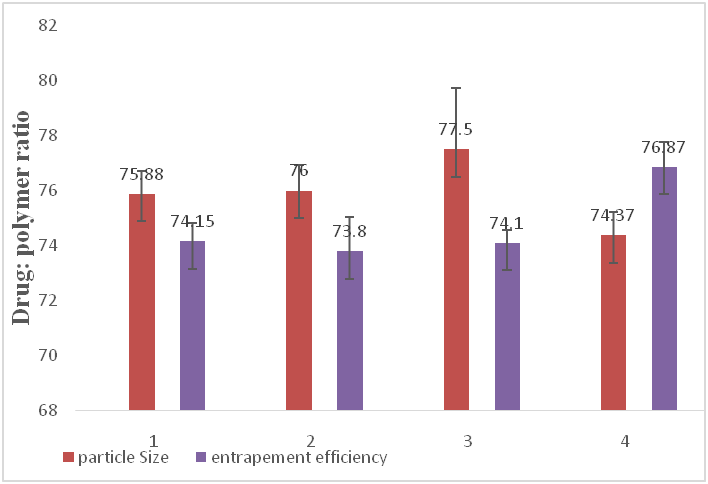 The dynamic light scattering technique will be used to determine the particle size. The formulation will be diluted in MilliQ water prior to the analysis using Zetasizer Nano ZS, Malvern Instrument, and Worcestershire, UK. The particle size and the entrapment efficiency of Microsponges in varying concentrations of CMA and CPPs are represented graphically in fig. 1,2,3,4 and 5, respectively [15, 16].